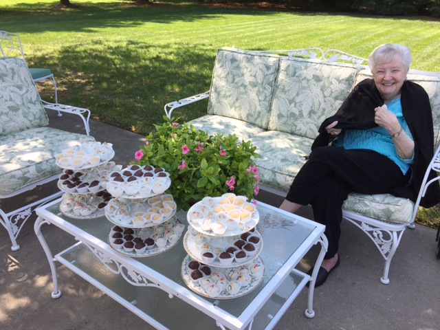 The pillow box she found at Michaeals and we made the little treat holder...it has one mini reese cup inside. I love it all!